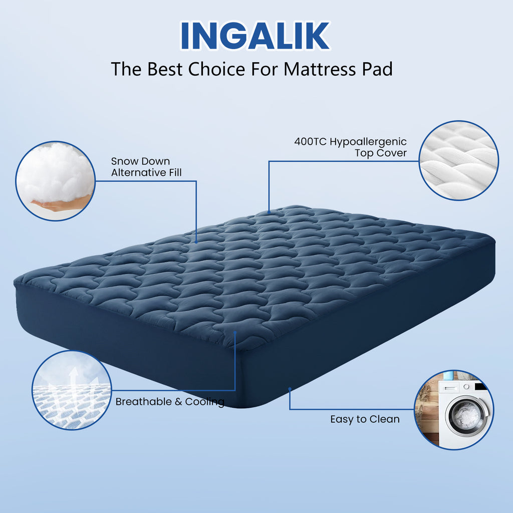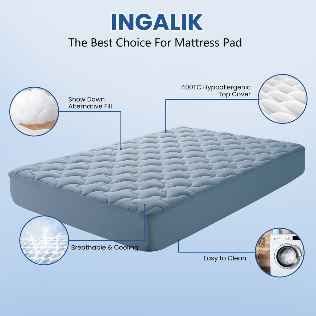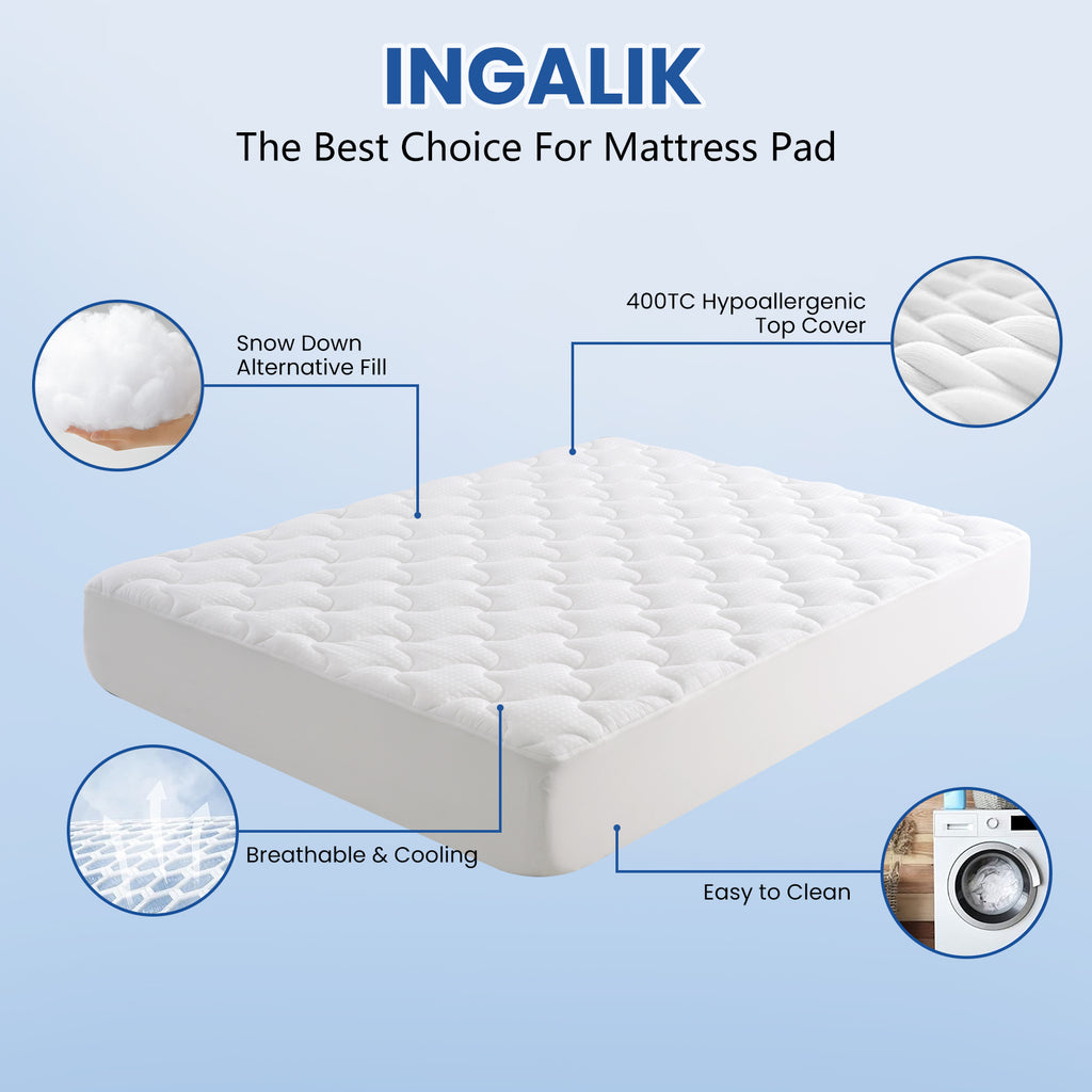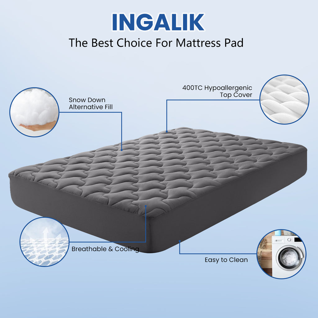 INGALIK 3 inch Gel Infused Memory Foam Mattress Topper, Cooling Bed Topper for Pressure Relief, CertiPUR-US Certified, Removable Cover